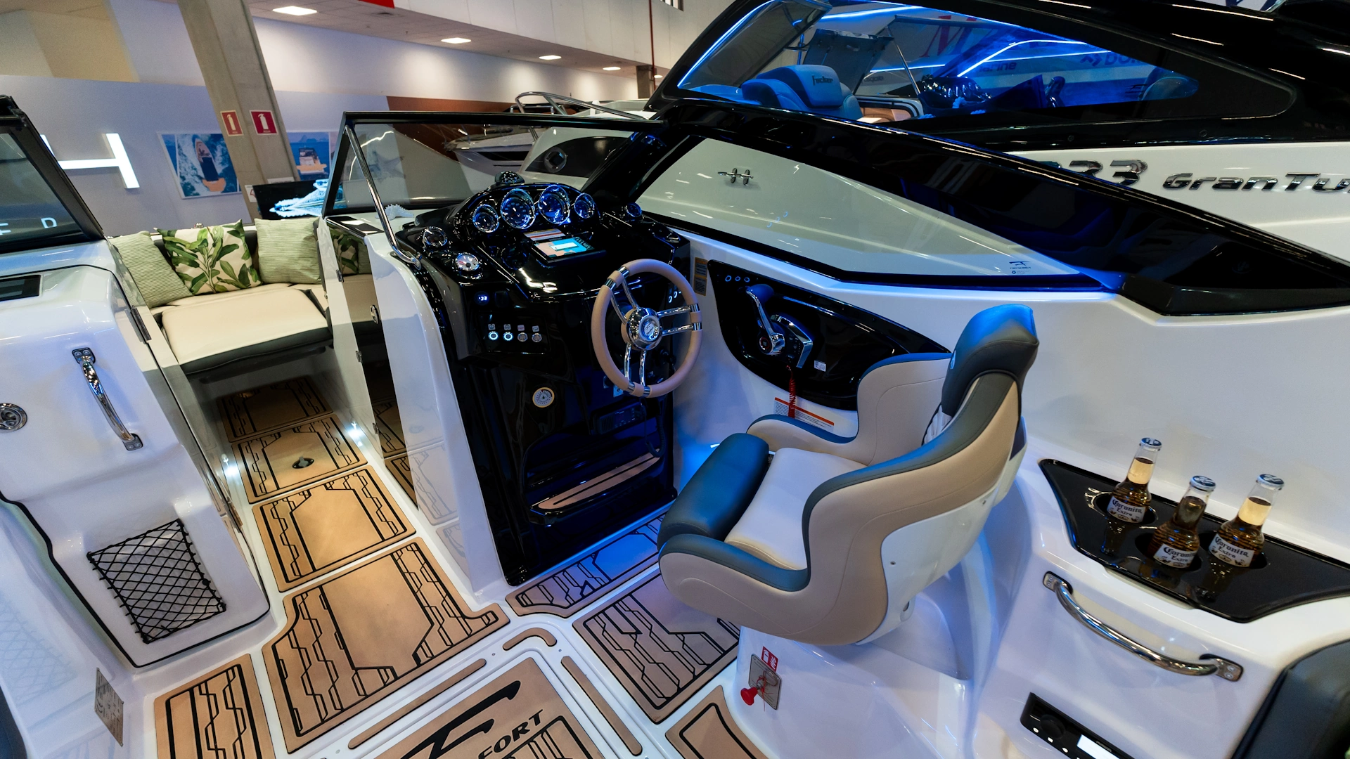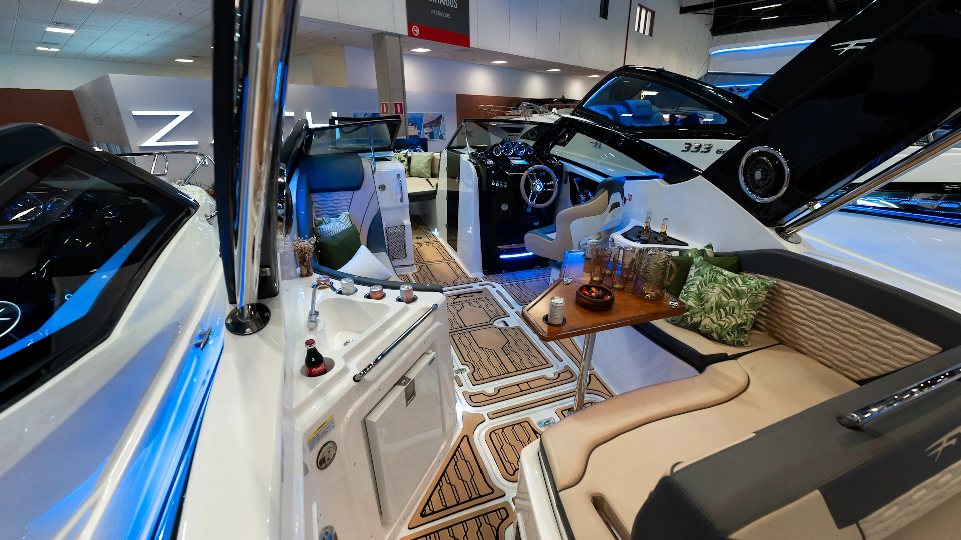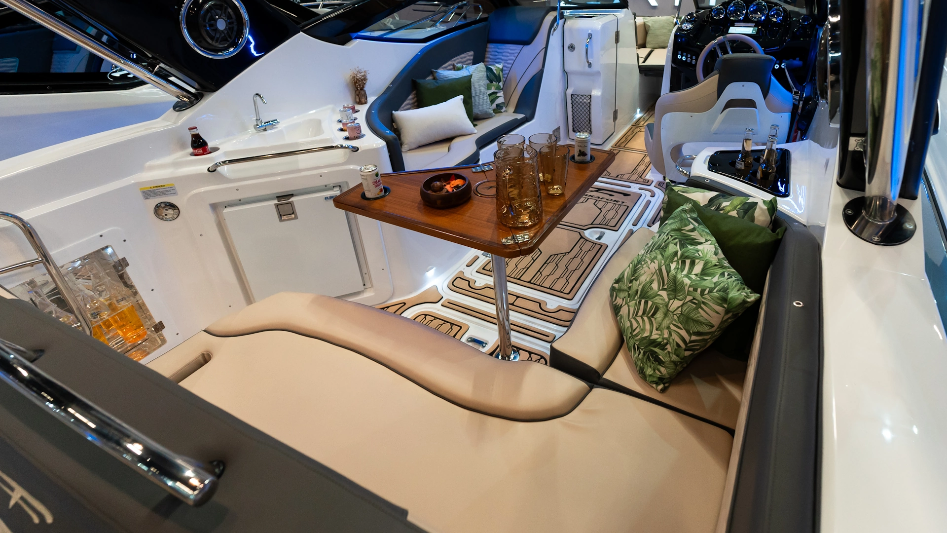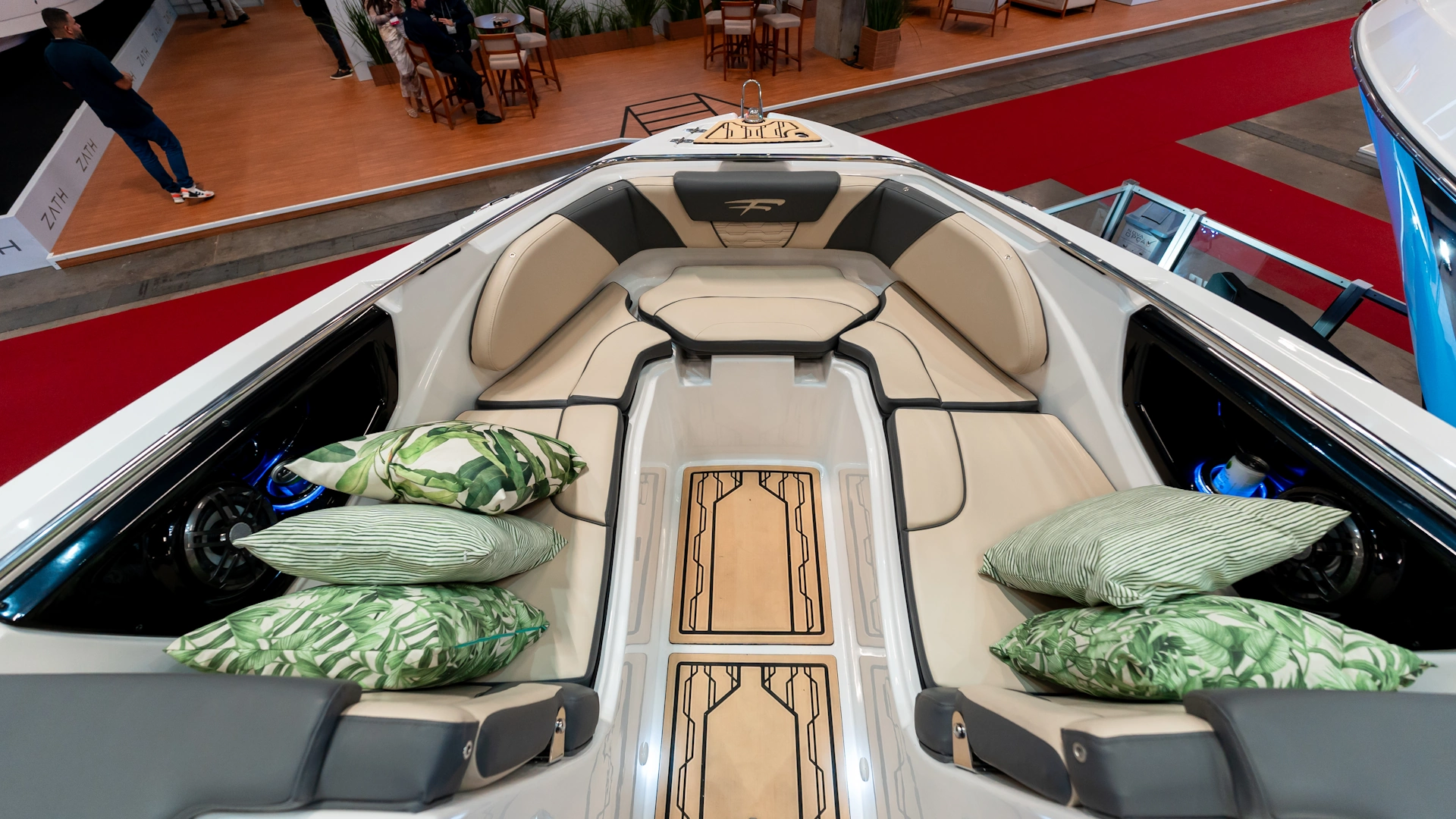 O visual imponente da Focker 272 GTO é resultado de um projeto desenvolvido com o máximo de precisão em cada detalhe. Acabamentos de alto padrão, desde estofamento premium e sistema de som de primeira linha até compartimentos espaçosos e detalhes em aço inoxidável, que acrescentam estilo e enriquecem a experiência a bordo.
