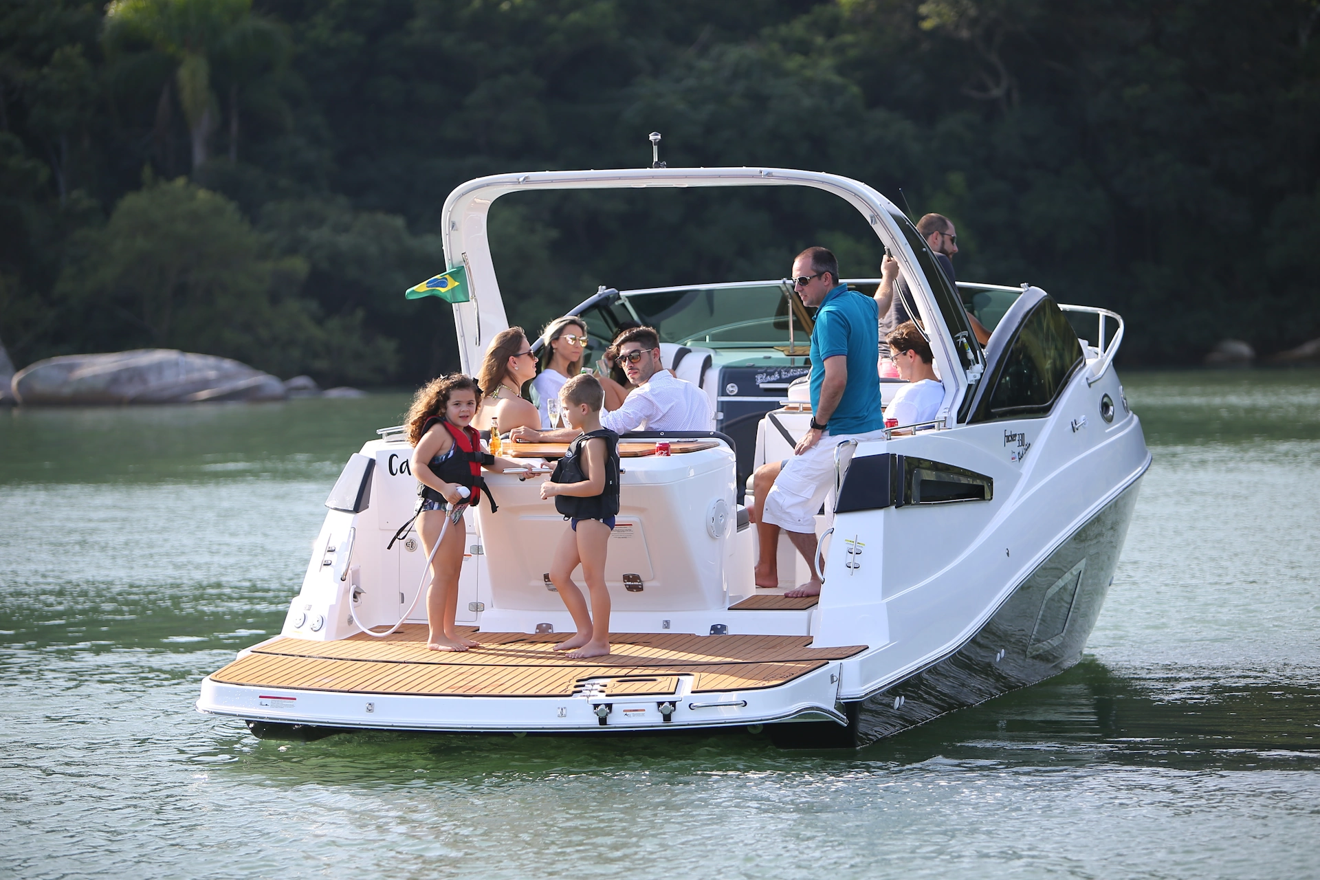 Com um visual dinâmico e contemporâneo, o Focker 330 GT foi projetado para facilitar a circulação e a interação de todos a bordo, e apresenta detalhes que tornam este barco ideal para compartilhar momentos inesquecíveis com familiares e amigos.