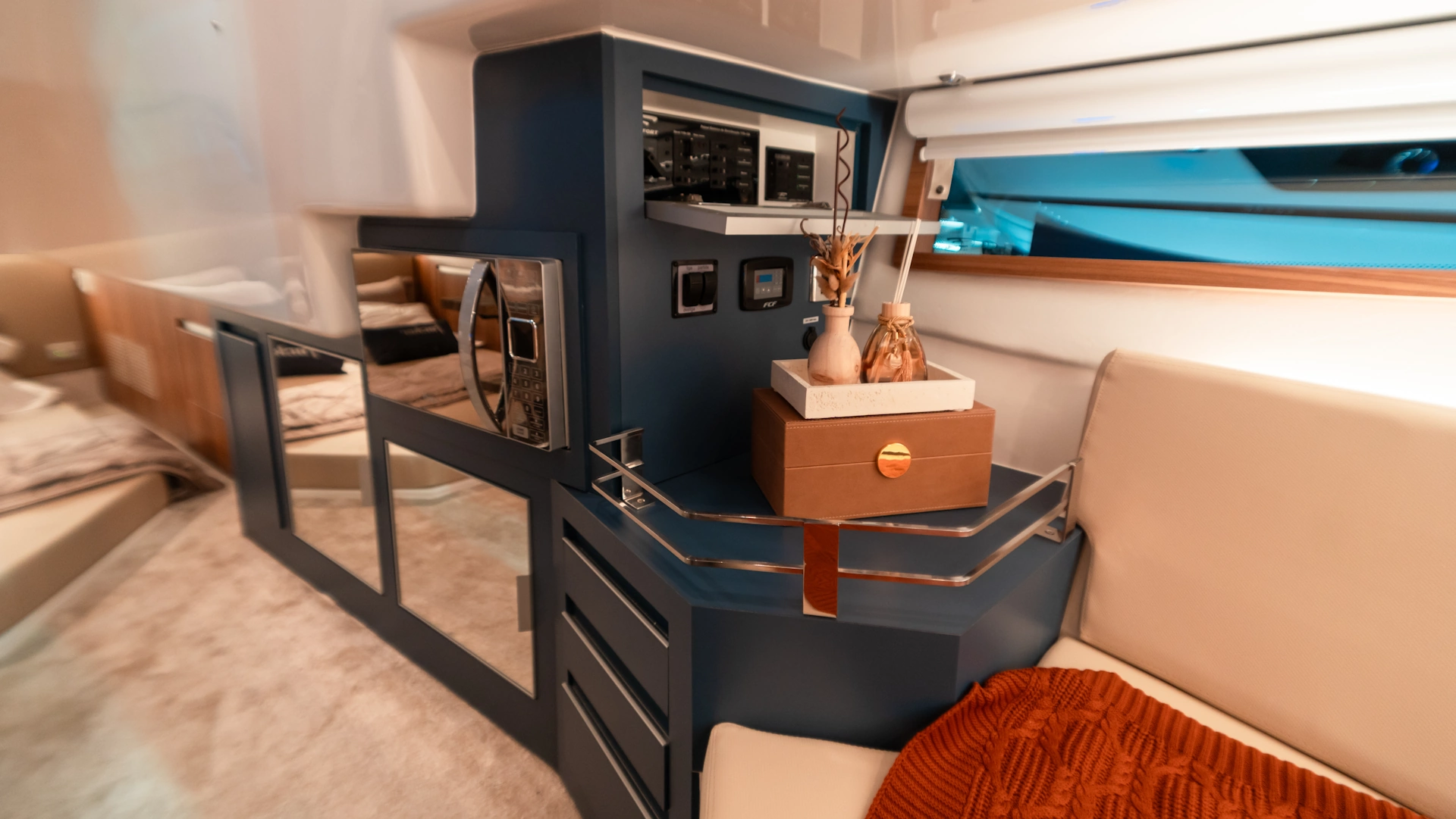 Apresenta um design inovador, proporcionando proa aberta aliada a uma cabine, sendo uma das pioneiras no Brasil com essas características. Detalhes pensados para oferecer o máximo em conforto e sofisticação.